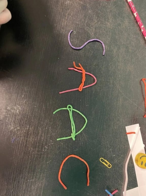 - Identifying plastic letters/numbers and identifying the letter by feeling it