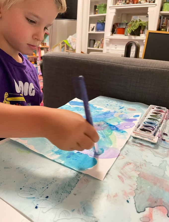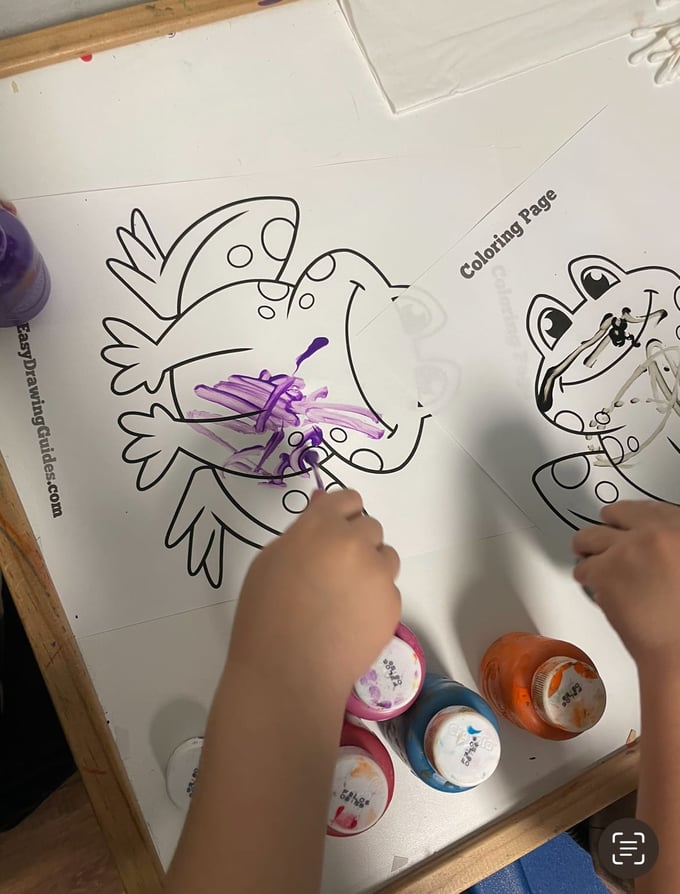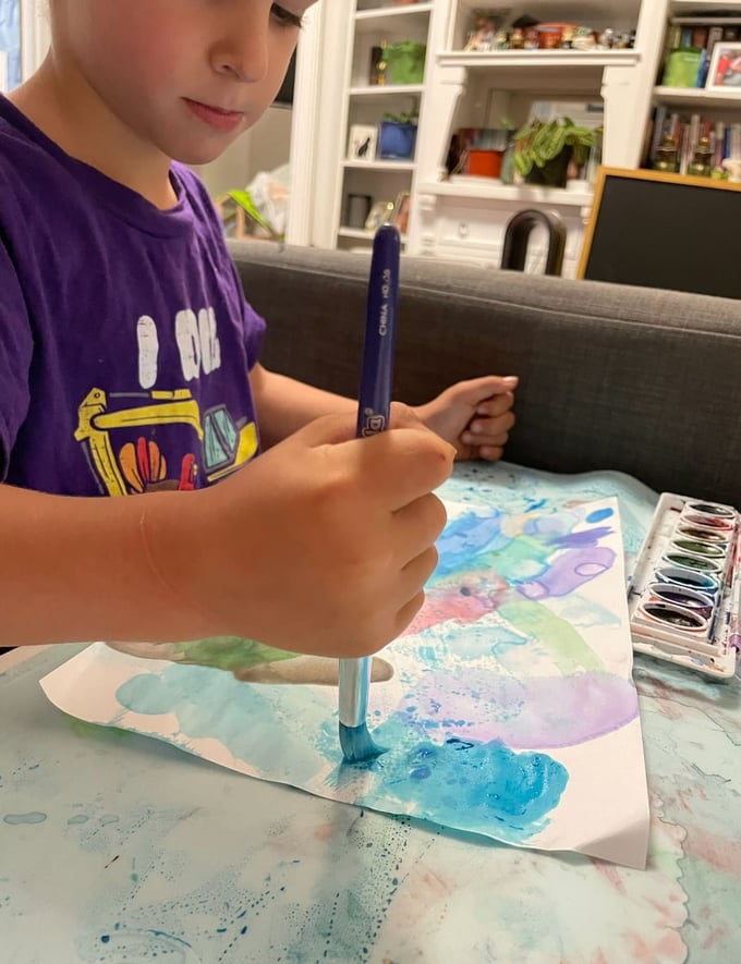 - The child will hold their writing utensil on the thumb side towards the paper and control it using full arm movements